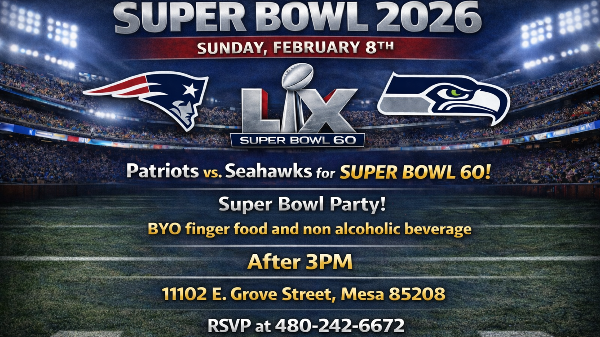 45+ Singles House Superbowl Party.